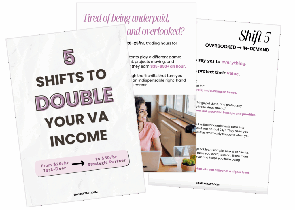 Learn the 5 shifts that help VAs work fewer hours, attract better clients, and finally get paid for the value they actually bring.